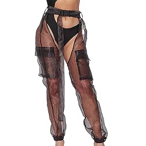 El ajuste de estos pantalones es favorecedor y cómodo. Gracias a su corte pull on, se ajustan sin problemas al cuerpo, proporcionando una sensación de libertad y confianza. Ten en cuenta que, al ser transparentes, puedes combinarlos con distintas prendas interiores para adaptarlos a tus preferencias personales.